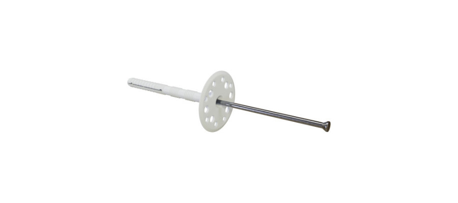 Izberite kovinski zatič za varno in trdno pritrditev izolacije. Premer vrtanja 10 mm, globina vgradnje 50 mm.
