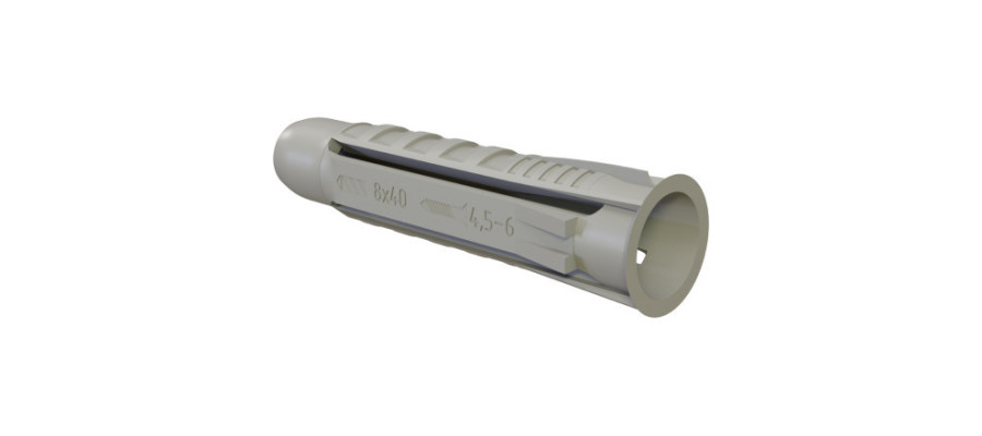 Univerzalni vložek iz poliamida je idealen za trdne in votle materiale, primeren za vijake premera 4,5-6,0 mm.