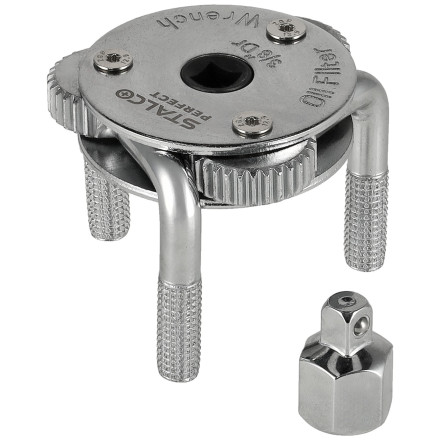 Visokokakovosten 3-čeljustni ključ za oljne filtre, idealen za profesionalce. Vključuje redukcijo za večjo prilagodljivost.