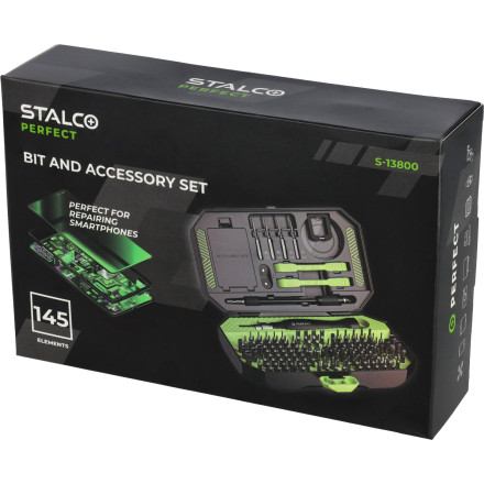 Izvijač set STALCO z 12 kosi ponuja prožnost in vzdržljivost z jeklom iz krom-vanadija in ergonomsko oblikovanim ročajem.