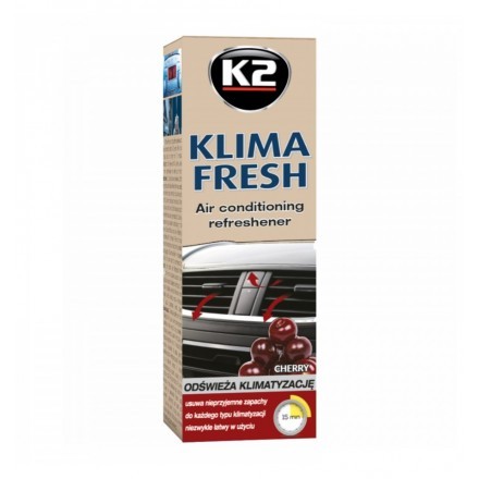 Slab in neprijeten vonj, ki se lahko širi iz vaše klimatske naprave povzroča zaspanost in s tem posledično tudi nesreče. K2 Klima Fresh je izredno učinkovito sredstvo za čiščenje celotnega klimatskega sistema. Odlikuje ga izredno enostaven postopek uporabe in izredna učinkovitost. Primeren je za vse vrste klimatskih naprav. Zagotavlja svež in prijeten vonj v kabini.