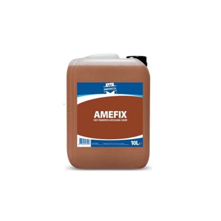 Preden nanesemo sredstvo je priporočljivo, da se s ščetko odstrani umazanija. Nato na površino nanesemo. Amefix in si za večjo učinkovitost pomagamo s ščetko. Manjše dele lahko tudi potopimo v sredstvo. Za popolnoma korodirane dele lahko uporabljamo tudi čisti koncentrat. Za manj korodirane površine in aluminij je razmerje mešanja z vodo od 1:10 do 1:50. Kadar sredstvo nanašamo na aluminij je očiščene površine po petih minutah potrebno sprati z vodo. Čisti koncentrat ravno tako uporabljamo za odstranjevanje težjih betonskih depozitov na površinah. V odvisnosti od debeline cementnega filma je razmerje mešanja od 1:3 do 1:5 z vodo. (priporočljiva vroča voda). Speremo z vodo po 10 do 15 minutah. Za odstranjevanje cementa lahko uporabljamo tudi v strojno s pomočjo cirkulacije.