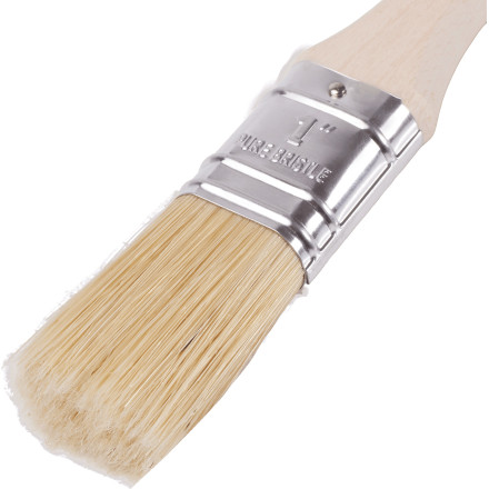 Ploski čopič Wood 1" s poliestrskimi ščetinami za natančno barvanje in lakiranim bukovim ročajem za udoben oprijem.