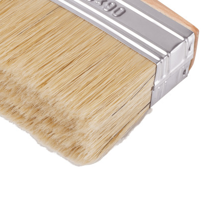 Flat Paintbrush Wood 2,5" z lakiranim bukovim ročajem zagotavlja visoko odpornost proti obrabi in nizko absorpcijo vode.