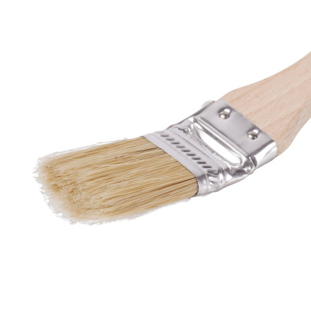 Ploski čopič z lesenim ročajem za natančno barvanje. Odporen na obrabo in nizko vpijanje vode.