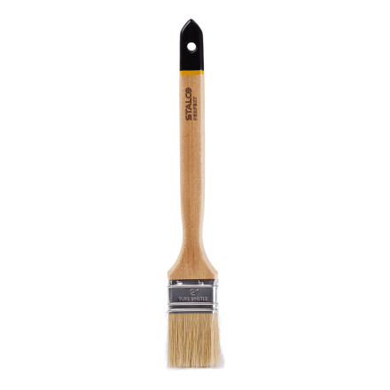 Ploski čopič z lesenim ročajem za natančno barvanje. Odporen na obrabo in nizko vpijanje vode.