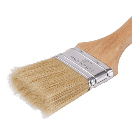 Flat Paintbrush Wood 2,5" z lakiranim bukovim ročajem zagotavlja visoko odpornost proti obrabi in nizko absorpcijo vode.