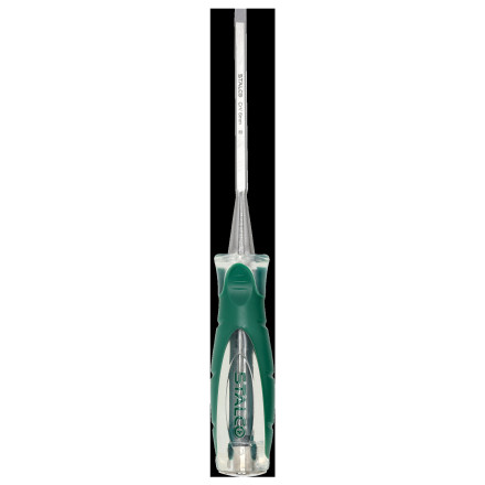 Izberite robustno dleto STALCO, izdelano iz krom-vanadijevega jekla, s šokom odporno ročico in kovinskim ščitnikom.