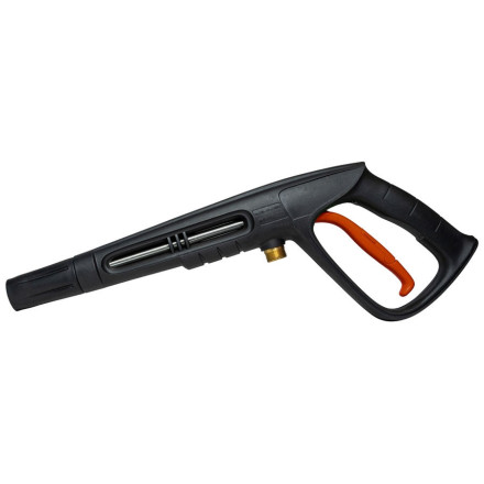 - Navojni priključek - Pištola je opremljena z navojno konico, ki omogoča varno pritrditev šobe in delovanje tudi pri zelo visokem vodnem tlaku.
