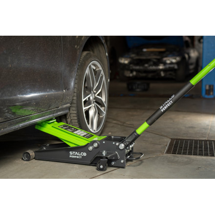 Ta hidravlična talna dvigalka je zasnovana za enostavno uporabo in maksimalno učinkovitost. Vrtljiva kolesa omogočajo hitro prilagajanje pozicije, dolga ročica pa zagotavlja udobno in enostavno dviganje vozil. Nizkoprofilna zasnova je še posebej uporabna za športna in druga vozila z nizkim podvozjem.