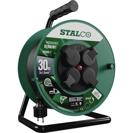Profesionalni izvlečni podaljšek na kolutu z dolžino 30m, zaščito IP44 in zmogljivostjo 16A/3680W. Popoln za industrijsko in gradbeno uporabo.