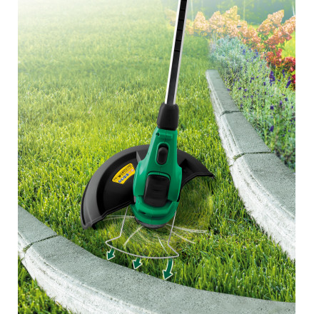 Ta trimer je idealen za obrezovanje trave ob robovih, poteh in okoli zidov ter ograj. S prilagodljivo dolžino in obračljivo glavo je delo enostavno in natančno. Zaradi lahke zasnove je trimer enostaven za manevriranje in shranjevanje, kar ga naredi popolnega za vsakodnevno uporabo v vrtu.