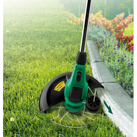 Električni trimer Stalco LTS30 z močjo 600W in širino reza 30 cm omogoča natančno in učinkovito obrezovanje trave.