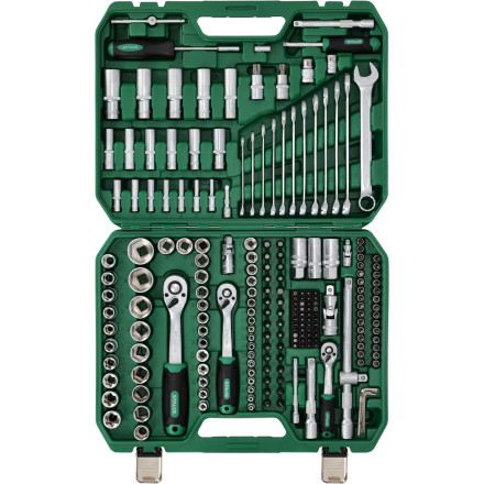 Za vse profesionalce in domače mojstre, ki iščejo zanesljiv in celovit set orodij, je ta set vtičnih in kombiniranih ključev prava izbira. Vsebuje 219 kosov, ki so nepogrešljivi v vsakem delavnici.