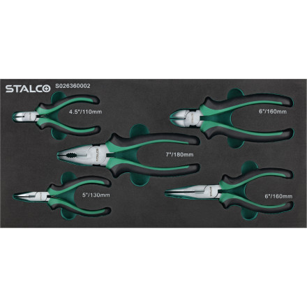 Izjemen 5-delni set klešč v EVA pladnju za optimalno organizacijo in hitro dostopnost orodja.