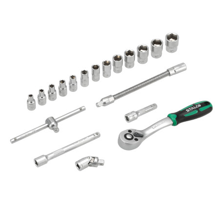 Komplet nasadnih ključev 1/4” iz CrV jekla, zasnovan za profesionalno uporabo. Vsebuje 19 delov za vsestransko uporabo.