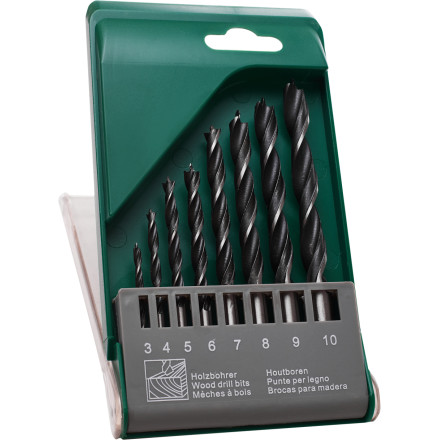 Komplet 8 visokokakovostnih svedrov za les, premera 3-10 mm, zagotavlja natančno in enostavno vrtanje.