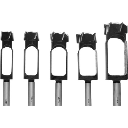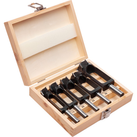 Set petih rezkarjev za les, ki omogočajo natančno obdelavo lesa v velikostih od 15 do 35 mm. Shranjeni v praktični leseni škatli.