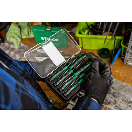 Set preciznih izvijačev CR-V 7 kosov je idealen za natančne tehnične in servisne naloge. Vključuje različne vrste in velikosti.