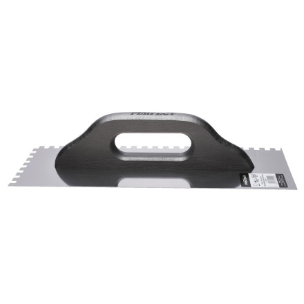 Izberite inoks gladilko 28 x 13 mm za natančna gradbena dela s 8 x 8 zobmi in udobnim lesenim ročajem.