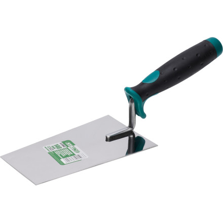 Trpežna trapezoidna gladilka iz karbonskega jekla z dvokomponentnim ročajem za udobno in učinkovito delo.