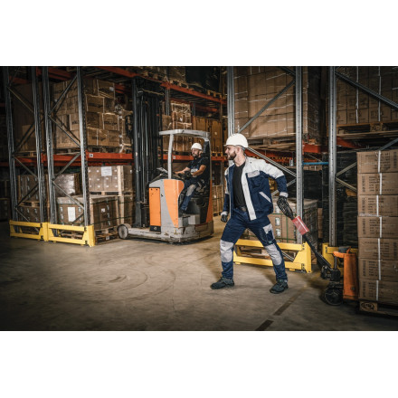 Udobne in trpežne delovne hlače v navy blue barvi z ojačanimi koleni in odsevnimi vložki za večjo varnost.