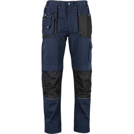 Udobne in trpežne delovne hlače v navy blue barvi z ojačanimi koleni in odsevnimi vložki za večjo varnost.