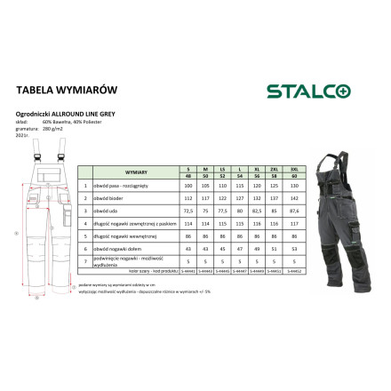 Udobne delovne hlače z naramnicami, ojačanimi koleni in odsevnimi vložki za večjo varnost in udobje.