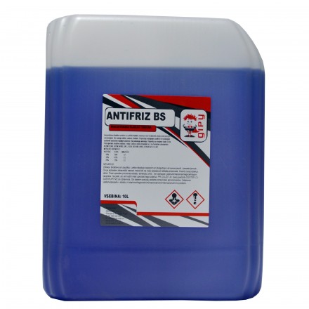 hladilnih sistemov in motorjev vseh vrst. Izdelan je po najsodobnejši tehnologiji iz monoetilenglikola in dodatkov, ki preprečujejo korozijo kovinskih delov in je zelo prizanesljiv tudi do nekovinskih elemEntov, ki sestavljajo hladilni sistem. Predvsem do gume in plastike. Učinkuje proti pregrevanju, oksidaciji, penjenju in nastanku usedlin. ANTIFRIZ BS ne vsebuje aminov, nitratov in fosfatov. Pred uporabo ga je potrebno razredčiti z vodo.