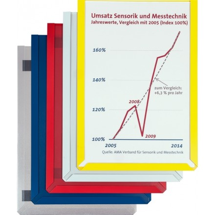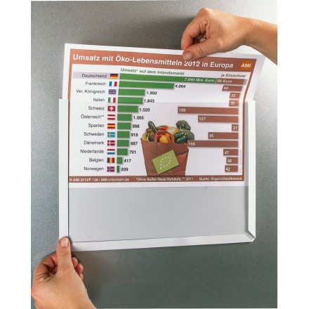 Prozorni žep je na treh straneh zarobljen, na hrbtni strani pa ima zmogljiv magnetni nosilec. Prozorna prekrivna folija ščiti pred umazanijo. Jasna in čista predstavitev dokumentov. Vsebino je mogoče hitro zamenjati.