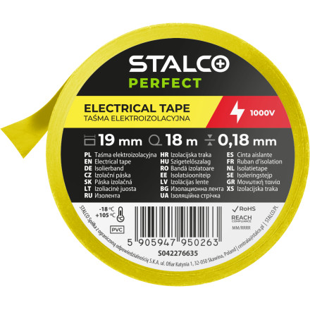 Izolirni trak iz PVC-ja, 19 mm širine in 20 m dolžine v rumeno-zeleni barvi, zagotavlja zanesljivo izolacijo pri električnih delih.