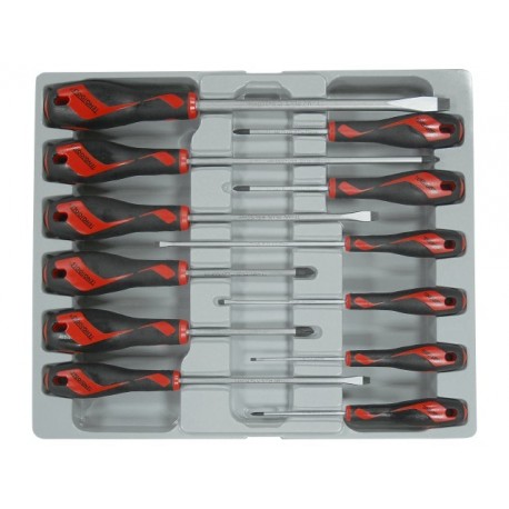 Teng Tools garnitura profesionalnih izvijačev. Izvijači so ergonomsko oblikovani in izdelani iz odpornega TT-MV PLUS jekla. V kompletu so izvijači PH, PO in PZ oblik. V kompletu je 12 kosov. Pakirani so v pvc vložki, ki ga lahko vstavimo v kaseto za orodje.