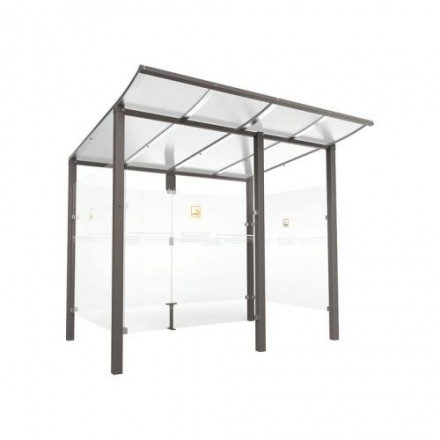 - Nadstrešek za kadilce dolžine 2500 mm, z 1x zadnjo steno, 2x stranskimi stenami, sprednjo ploščo in cigaretnimi nalepkami na stenah.