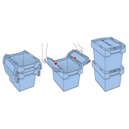 - Obrobe zložljivega pokrova zagotavljajo visoko stabilnost in možnost zlaganja enega zaprtega zaboja na drugega.