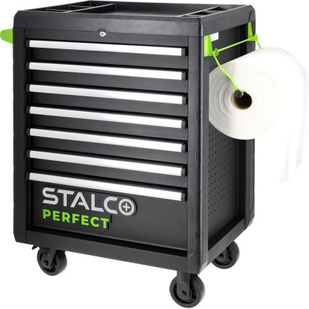 Kovinski kovček za orodje s prašnim premazom za dolgo življenjsko dobo. Združljiv z vozičkom STALCO PERFECT.