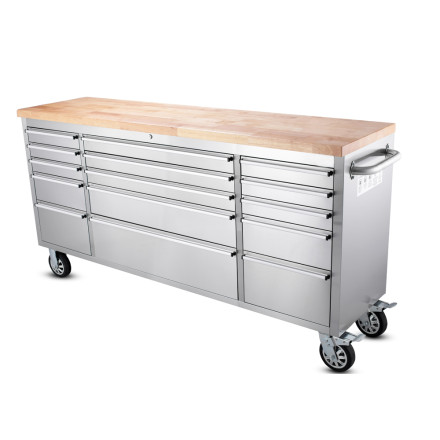 Odkrijte robustno omarico za orodje s 12 predali in nerjavečo ploščo, zasnovano za optimalno shranjevanje in organizacijo.