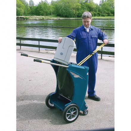 Kompakten smetarski voziček. Izdelan iz visoko odporne plastike „DURAPOL“. Prilagojen za zbiranje odpadkov v polietilenske vrečke. Ohišje ima nosilec za orodje. Enostavna uporaba s pomočjo praktičnih ročk.