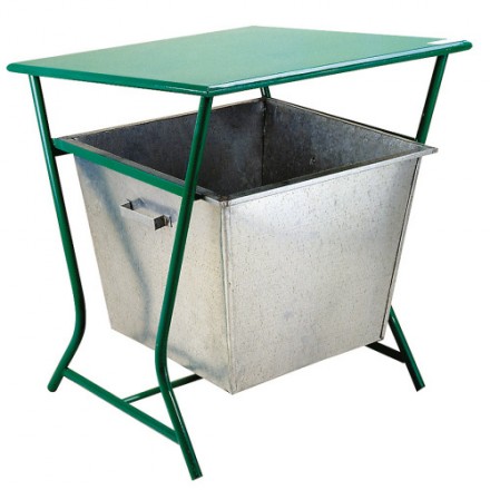 - Koš je sestavljen iz stojala s prašnim lakiranjem in posodo iz pocinkane pločevine, ki prosto leži na stojalu.