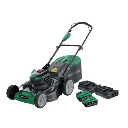 Košnja brez omejitev z akumulatorsko kosilnico LMS40-46BL, ki vključuje dve zmogljivi bateriji in polnilca.