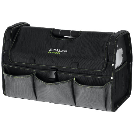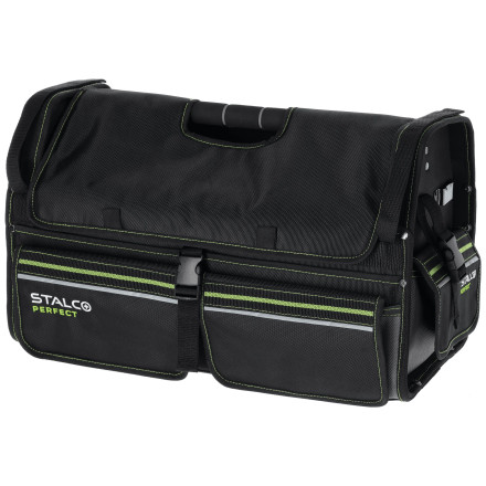 Ta torba je zasnovana za enostavno prenašanje in varno shranjevanje vašega orodja, ne glede na to, ali delate na terenu ali v delavnici. Odsevni elementi poskrbijo za večjo varnost, medtem ko ojačano dno ščiti vaša orodja pred poškodbami.