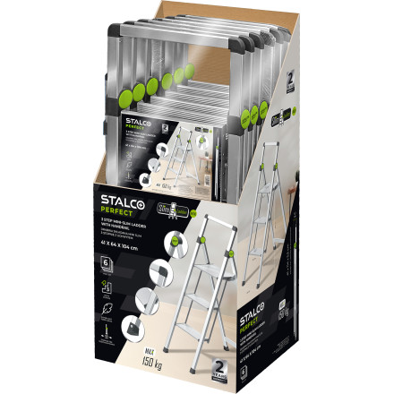 Odkrijte idealno rešitev za vaše domače in profesionalne potrebe z aluminijasto dvostopenjsko mini slim lestvijo z ročajem. Ta lestev je zasnovana za maksimalno varnost, udobje in prihranek prostora, zaradi česar je popolna za uporabo v majhnih prostorih.
