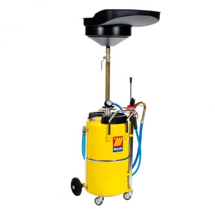 Pnevmatsko gnani lovilec/sesalec odpadnega olja je idealna rešitev za hitro menjavo odpadnega olja vozil. Zbirna posoda je opremljena s kolesi in s stranskim indikatorjem nivoja olja. Vrh posode iz abs plastike, s troprekatnim predalom za orodje. Ergonomsko oblikovana in za 360° vrtljiva lovilna posoda je opremljana z rešetkami za odcejanje oljnih filtrov. Pnevmatsko praznjenje zraka (max tlak 0,5 bar). Olje menjajte pri temperaturi 60° - 80°C (ko je motor ravno ugasnjen).