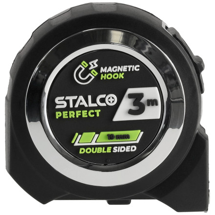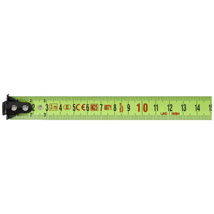Merilni trak dolžine 3 m in širine 19 mm z dvostranskim potiskom, samodejno zavoro in ergonomično obliko za enostavno uporabo.