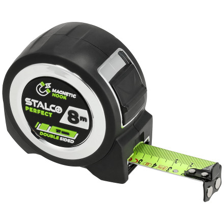 Merilni trak 8m x 27mm z dvojno skalo in avtomatsko zavoro za enostavno uporabo.