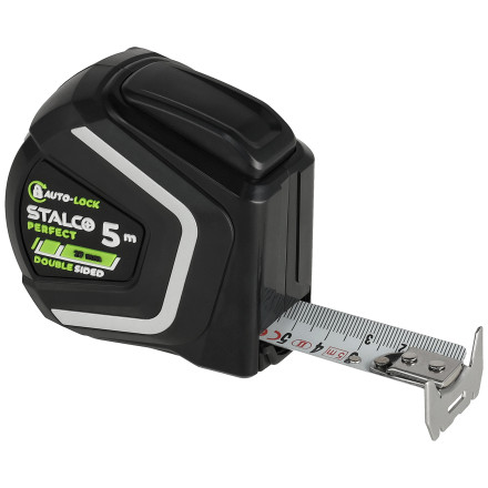 Merilni trak 8m x 27mm z dvojno skalo in avtomatsko zavoro za enostavno uporabo.