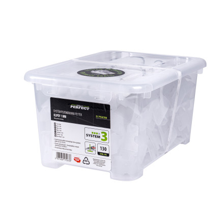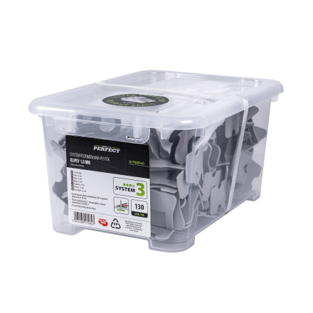 Izravnalni klini SYSTEM 3 zagotavljajo popolno poravnavo ploščic debeline 6-18 mm. Pakiranje vsebuje 130 kosov.