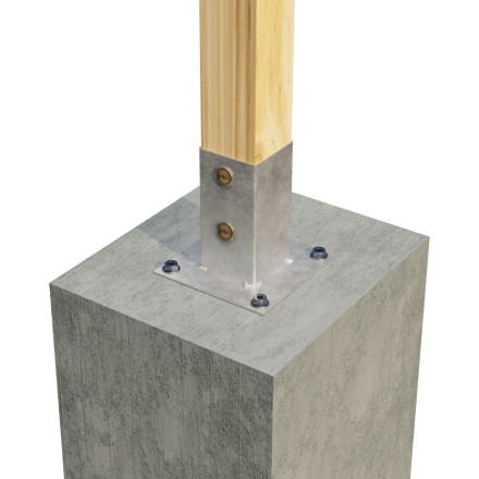 Stabilna pritrditev lesenih stebrov z ocinkovano zabijalko, ki ščiti pred vlago.