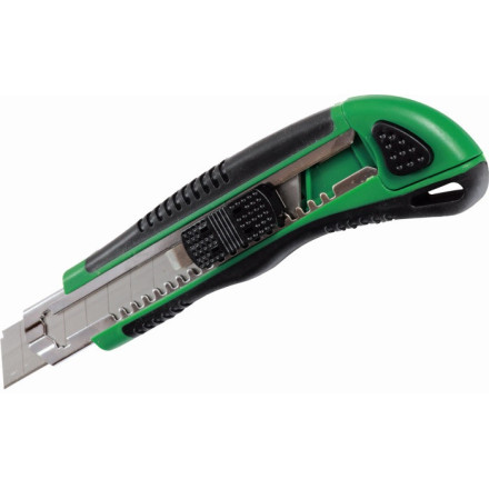 Izjemno oster 18 mm snap off nož z ergonomsko zasnovo in samodejno blokado rezila za varno in natančno delo.