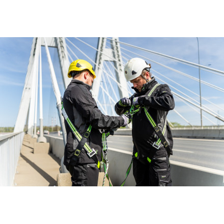 Varnostni pas GREKON z dvema pritrdilnima točkama je idealen za delo na višini, zagotavlja maksimalno zaščito in udobje.