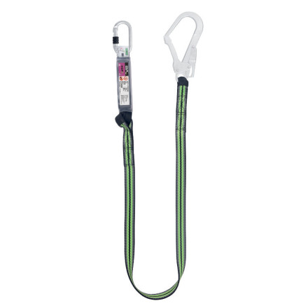 Trdna konstrukcija vrvi se kaže v tem, da je izdelana iz 1,8 m dolgega poliestrskega traku, kar zagotavlja vzdržljivost in odpornost na težke delovne pogoje. Varna pritrditev vrvi je opremljena z jeklenim vponkom z vijačnim zaklepom in jeklenim kavljem s širino odprtine 50,8 mm, kar omogoča stabilno povezavo s sidrno točko. Blažilnik udarcev širine 35 mm učinkovito zmanjša silo udarca v primeru padca in zagotavlja absorpcijo energije manj kot 6 kN. Izdelek ustreza standardu EN 355, kar potrjuje njegovo visoko kakovost in skladnost s strogimi varnostnimi standardi. Idealen za dela na odrih, kjer je zanesljiva zaščita prednostna naloga.